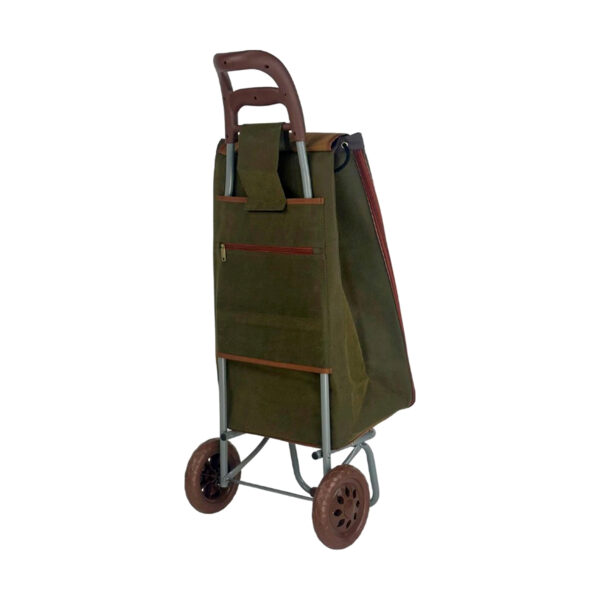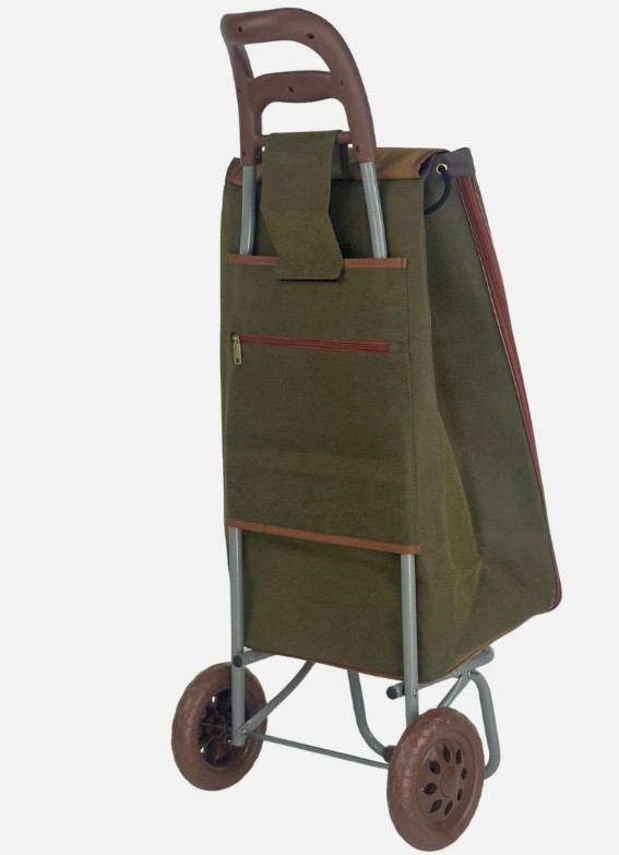 Tired of juggling heavy bags? Upgrade your shopping trips with the Premium Faux Leather Trolley. This classic shopping trolley is your new go-to for effortless errands. Built with a sturdy frame and large, durable wheels, it’s designed to handle a full load with ease. The bag features a handsome olive green colour with brown accents, giving it a timeless, understated look. With a spacious interior and a secure top flap, this trolley is the perfect blend of style and practicality for all your shopping needs.